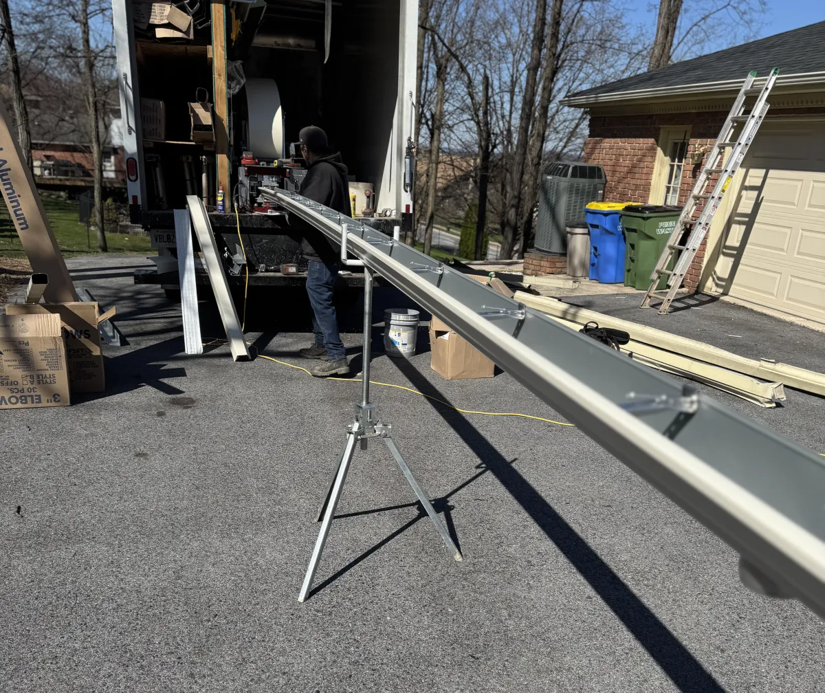 Most residential gutter installations are completed in one day. We arrive with all necessary equipment, custom-cut your gutters on-site, and install them efficiently. For larger homes or complex projects, installation may take up to two days.